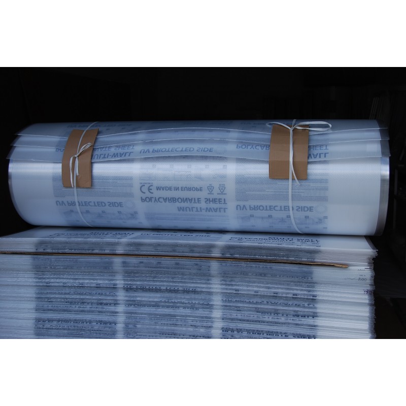 Polycarbonate ( Multilayer PC plastic) 2100mm wide and 6000mm long. Suitable for both indoor and outdoor use. The sheet is covered with UV protection.