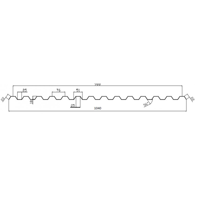 Lehe suurus - trapets 76/18 1,2x1040x6000 mm
