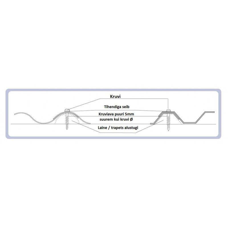 Materjali paksus on 0,8 mm, roovitus sammuga 600 mm. Materjal on löögi- ja purunemiskindel.