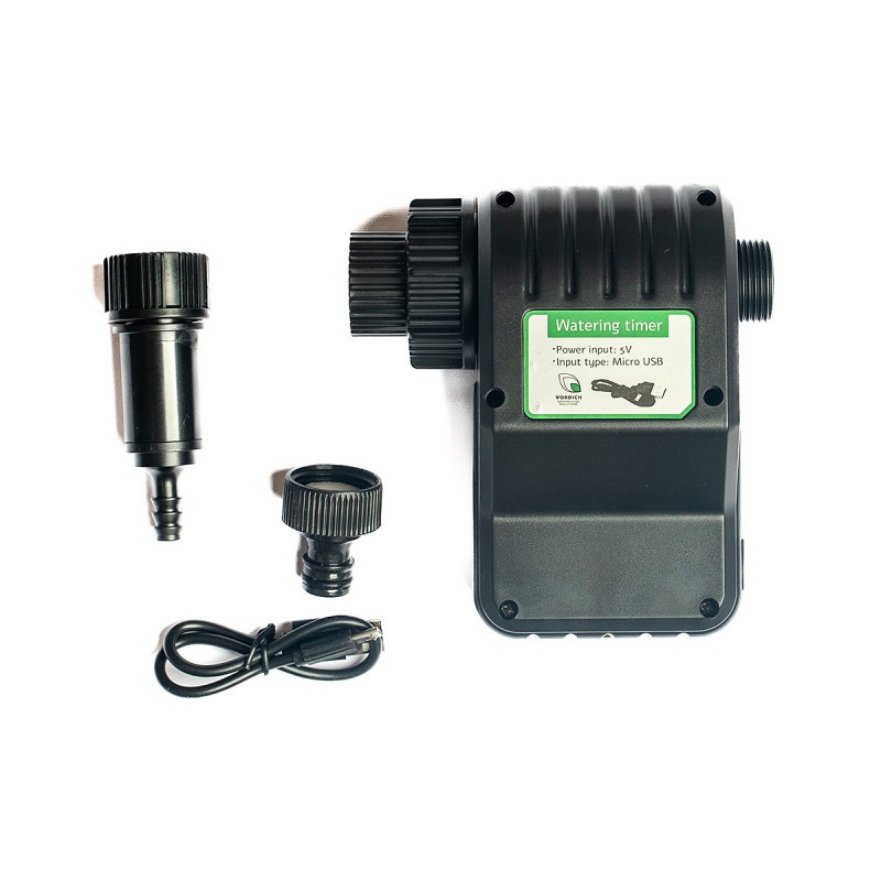 Электронно-механический таймер полива Vordich разработан для автоматизации процесса полива растений. Он совместим с системами капельного орошения Vordich и аналогичными системами, а также может работать автономно, подавая чистую холодную воду по заранее заданной программе. Таймер подключается к насосу подачи воды или к бочке с водой через трубу или шланг с краном. Он эффективно работает в гравитационных системах и оснащен встроенным аккумулятором, рассчитанным на 1000 рабочих циклов. Аккумулятор можно заряжать с помощью любого внешнего аккумулятора или через домашнюю сеть через разъем Micro USB от источника 5 В.