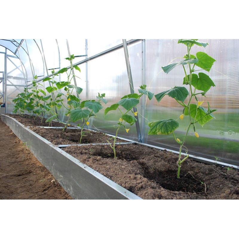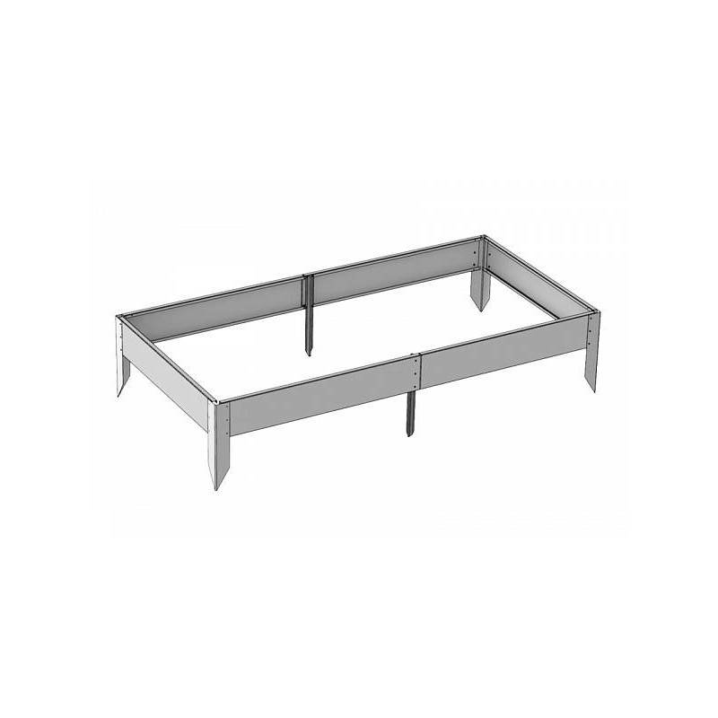 3. Грядка из оцинкованного металла имеет небольшой вес. Габариты упакованной грядки позволяют перевозить ее в легковом автомобиле. Ширина грядки 1 м или 0.7 м. Высота установленного бордюра от уровня грунта — 17 см, опоры заглубляются в грунт на 25 см. Нужная длина достигается добавлением удлиняющих вставок к базовому комплекту.