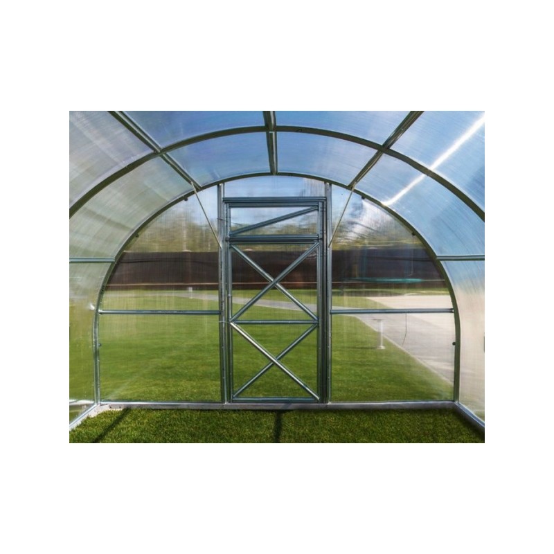 «Дачная Орбита» - это упрощенный вариант теплицы «Дачная-Трешка». В противоположных торцах теплицы дверные проемы с форточкой. Длина теплицы «Дачная-Орбита» -4, 6, 8 метра. С помощью дополнительных вставок длина теплицы увеличивается до необходимого покупателю размера. Для крепления каркаса на грунт используются специальные Т-образные окончания. В комплект входит покрытие для теплицы (2 слойный сотовый поликарбонат 4мм) и все необходимое для крепления покрытия.